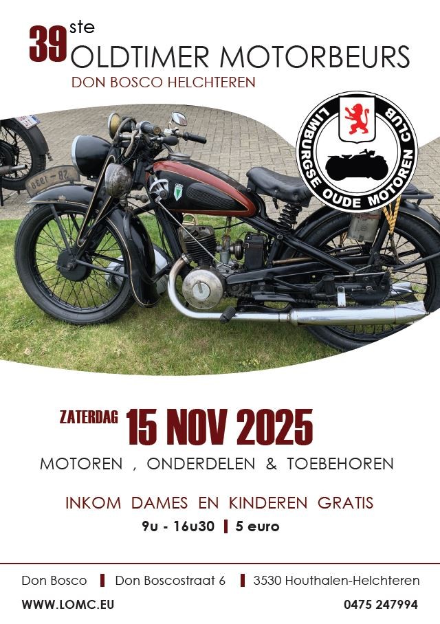 Bourse d'échange annuelle de pièces de vieilles motos et cyclomoteurs. Cafétéria avec œufs au bacon, baguettes au jambon ou au fromage et soupe fraîche à prix raisonnables ! Bienvenue à tous ! Parochiezaal Blauberg, Blauberg 21, 2230 Herselt